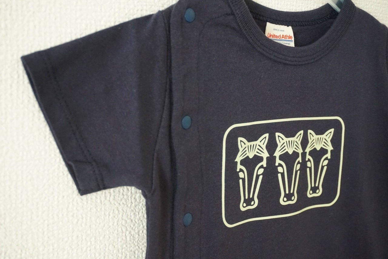 ネイビーのボディにレモンイエローでミツウママークをプリント。